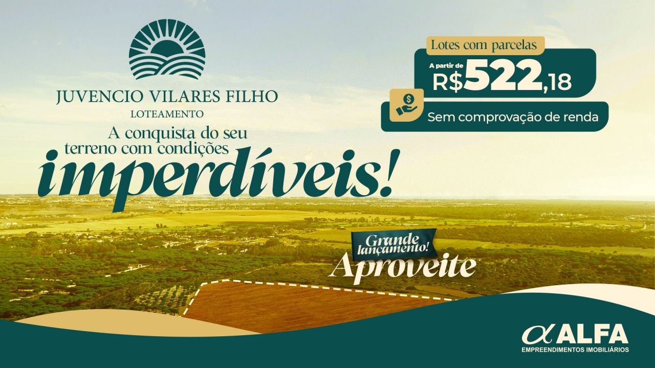 O Loteamento Juvencio Vilares conta com Lotes Amplos, rica Área Verde, Infraestrutura de Primeira Qualidade e Belo Paisagismo